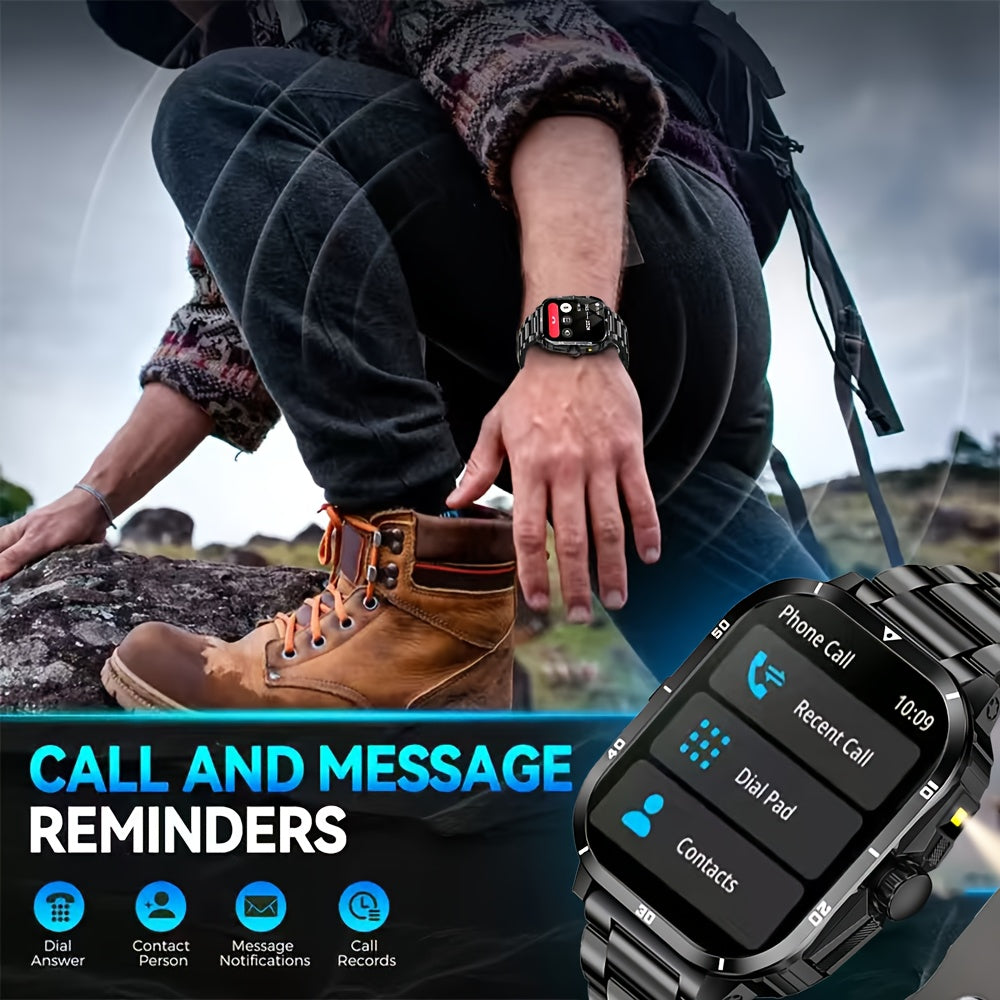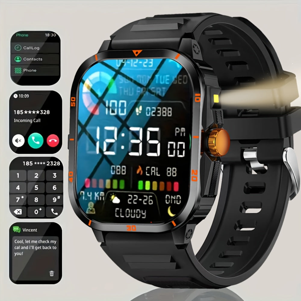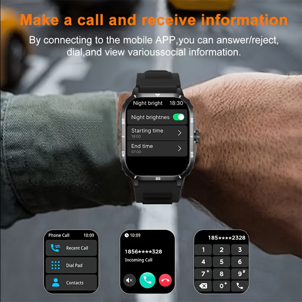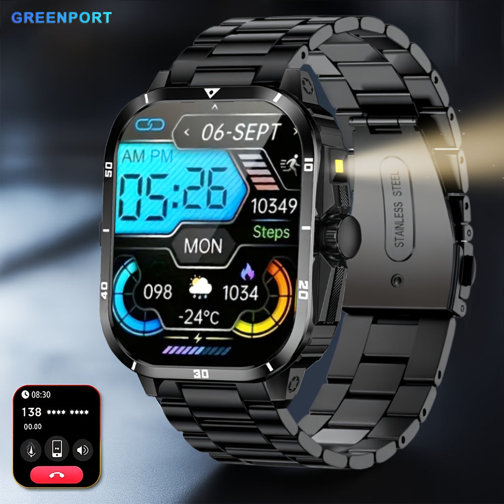 Smartwatch masculino Greenport - 4.6cm, tela sensível ao toque HD, rastreador esportivo LED, chamadas sem fio, carregamento USB, 8 modos, para Android e para iPhone, presente ideal para as férias, pulseira de silicone, capa de silicone, smartwatch
