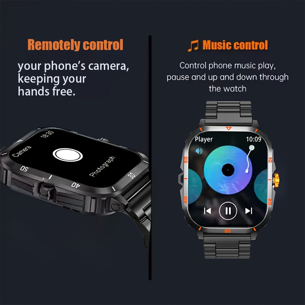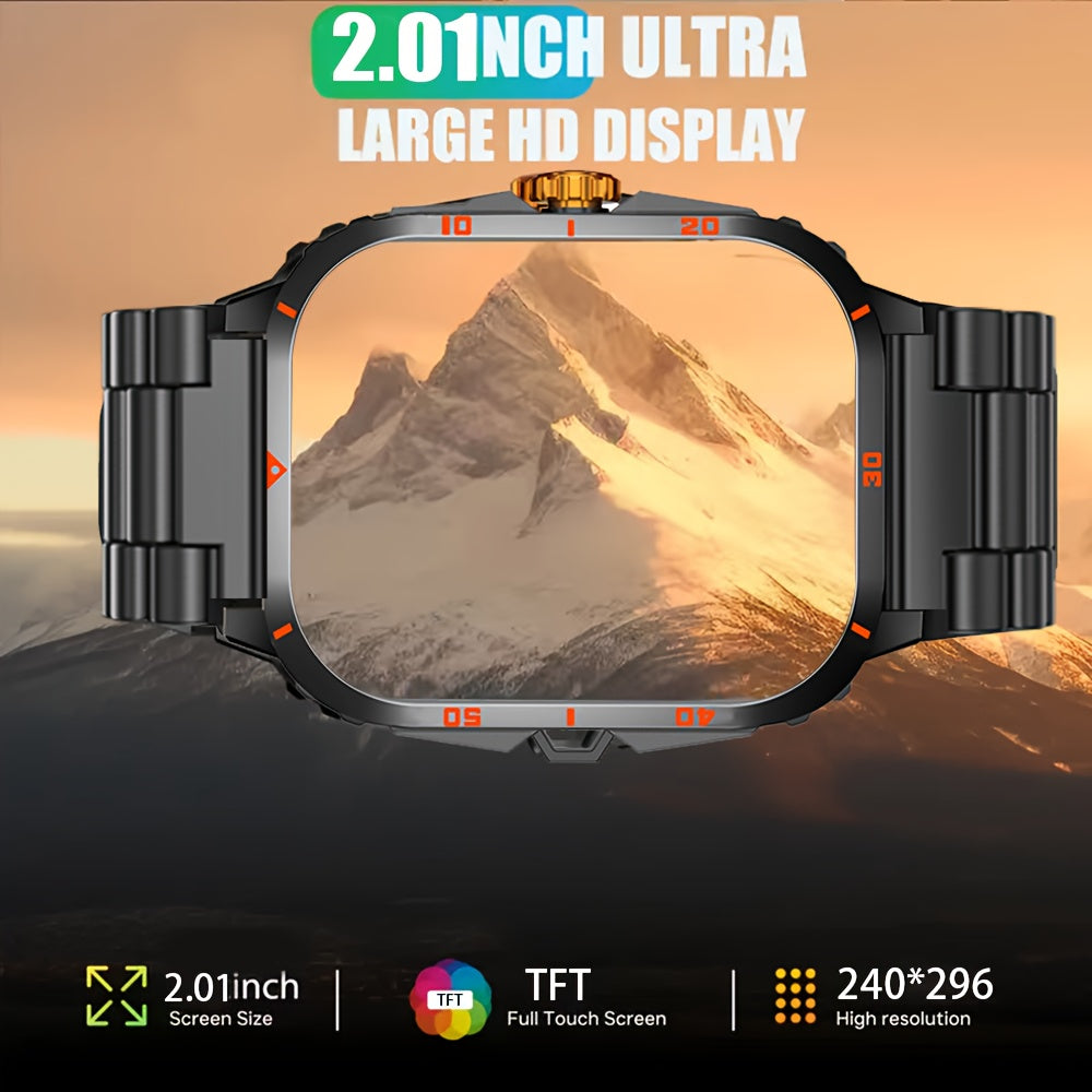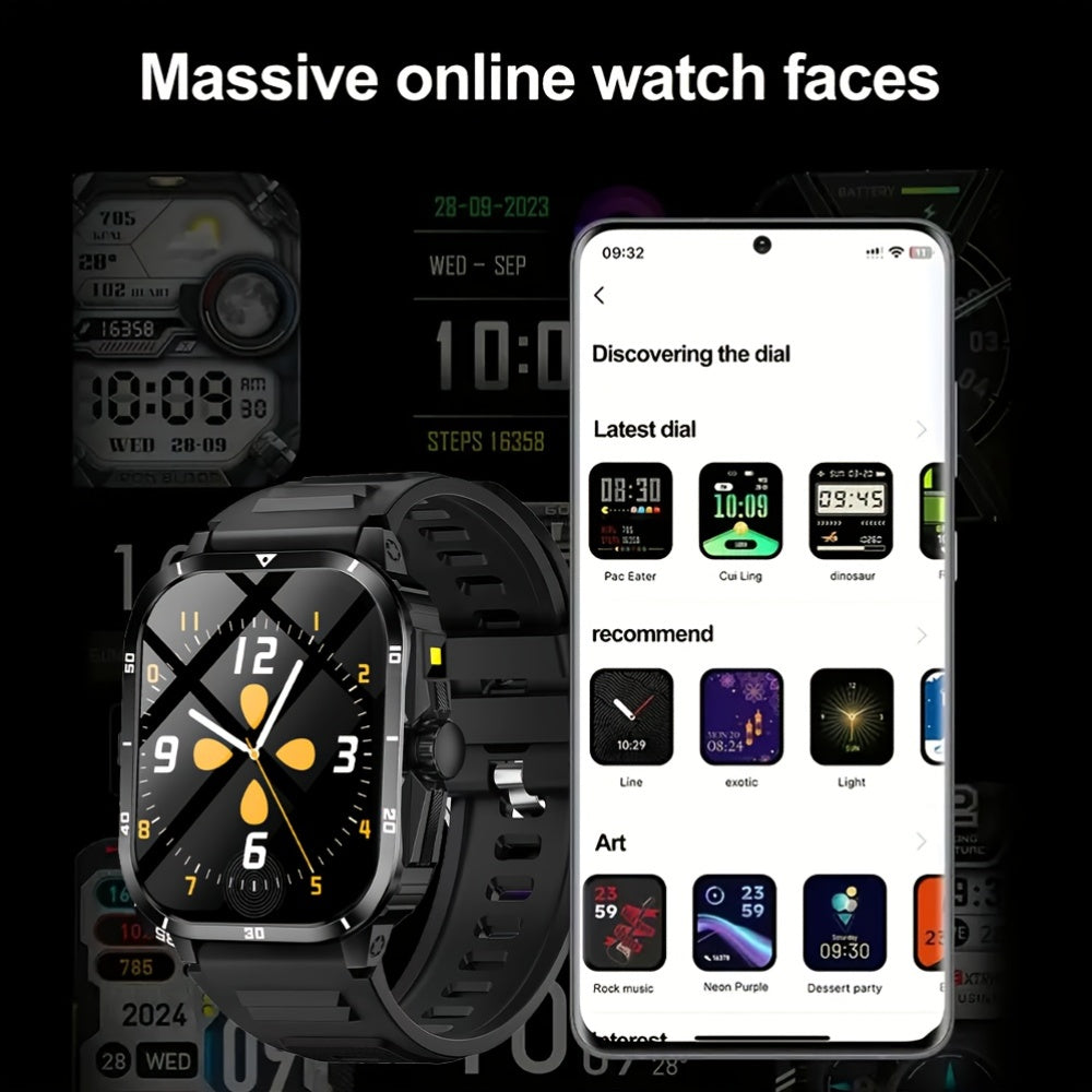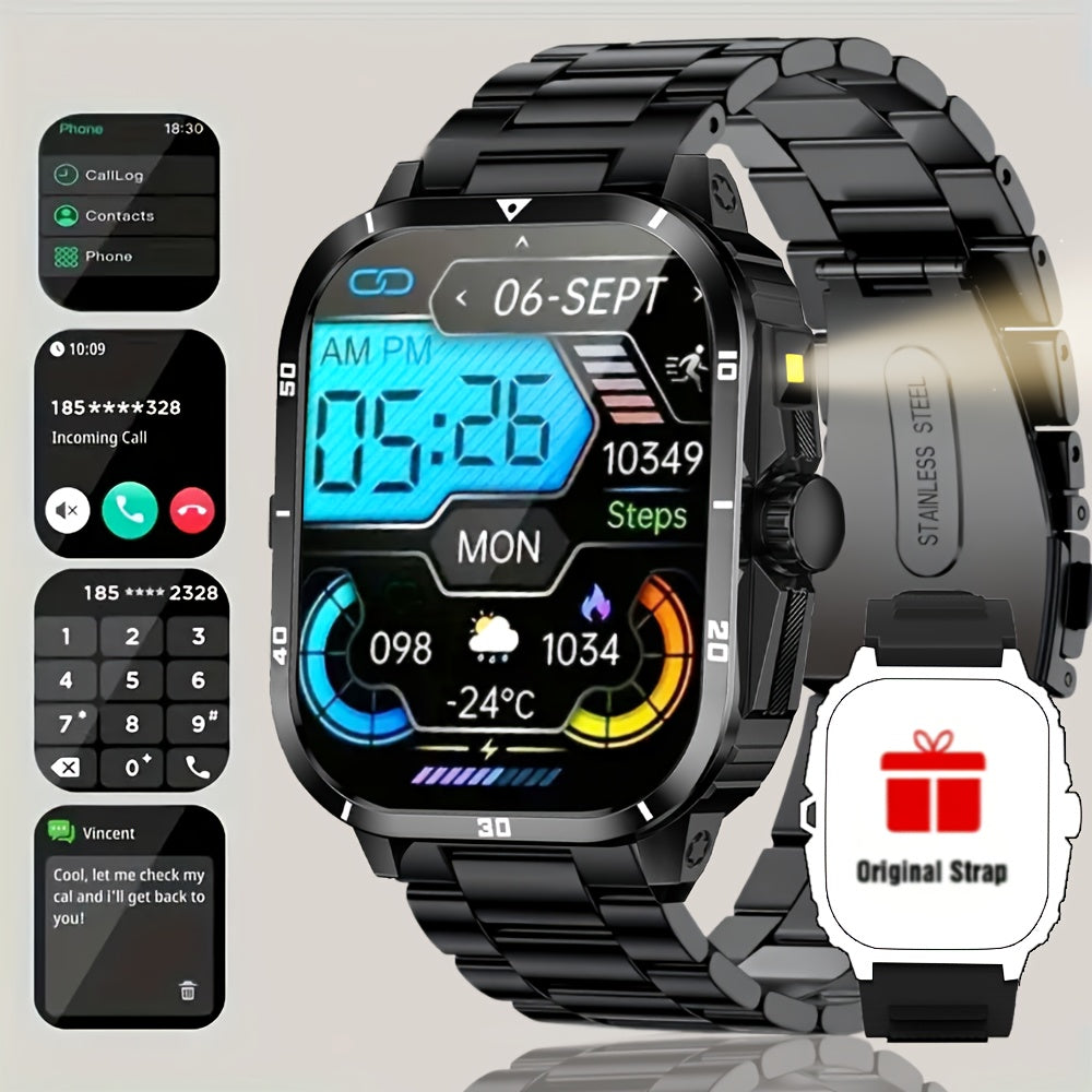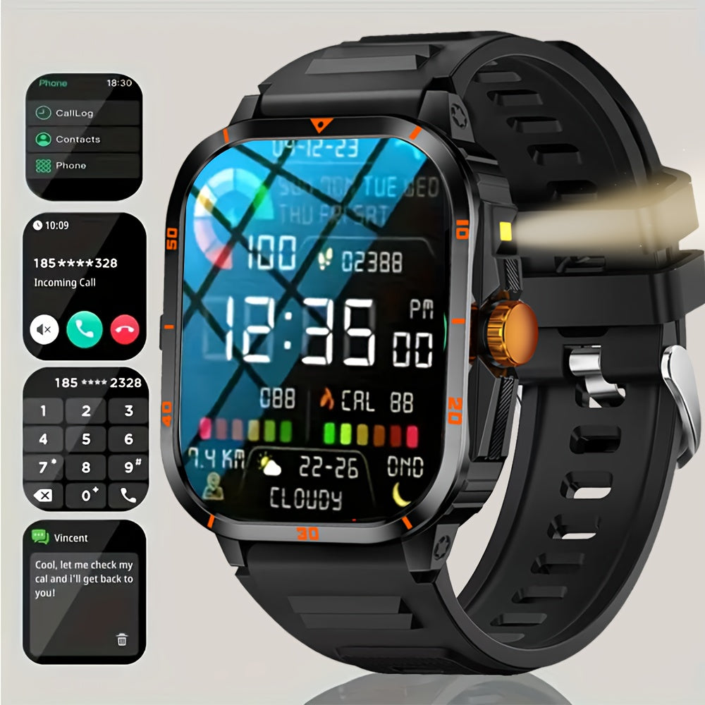 Smartwatch masculino Greenport - 4.6cm, tela sensível ao toque HD, rastreador esportivo LED, chamadas sem fio, carregamento USB, 8 modos, para Android e para iPhone, presente ideal para as férias, pulseira de silicone, capa de silicone, smartwatch